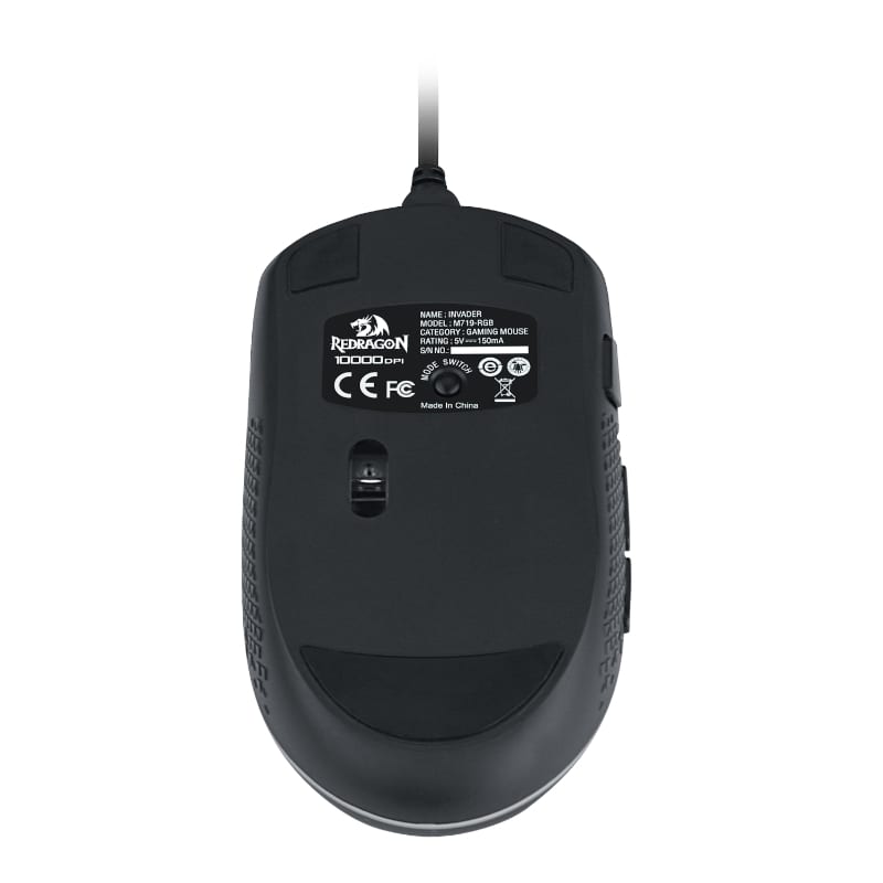 The Redragon INVADER 10000DPI 8 Button RGB Gaming Mouse is an ambidextrous styled mouse with three side buttons and a total of seven programmable buttons. Its 3325 sensor ensures precise movements with adjustable DPI and a polling rate of up to 1000Hz. The RGB backlighting can be set to multiple modes and profiles with Redragon's software.